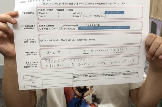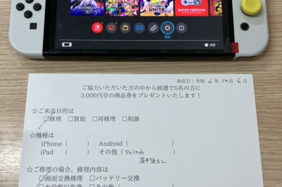【お客様の声】大阪市北区よりお越しのお客様のNintendoSwitch(有機EL)の右ジョイコンのアナログスティックを交換しました!