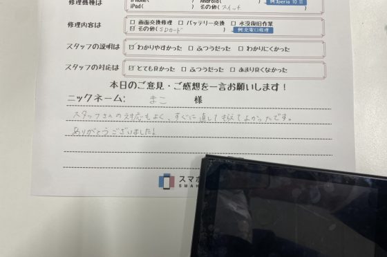 弊社の修理サービスをご利用いただいきましたお客様の声です。