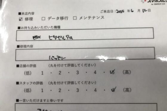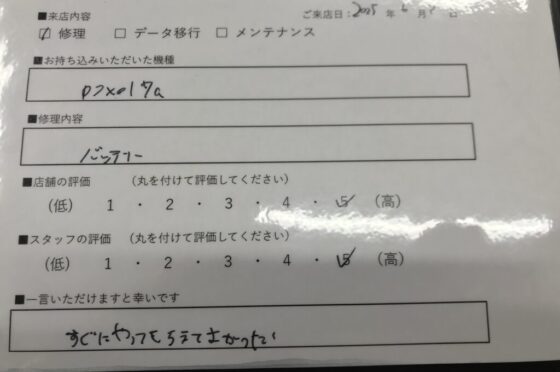 弊社の修理サービスをご利用いただいきましたお客様の声です。