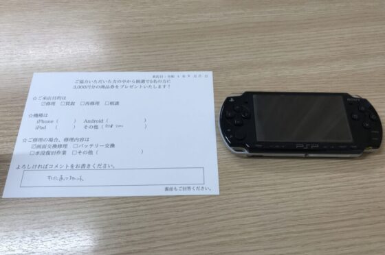 【お客様の声】大阪市よりお越しのお客様PSP-2000液晶交換修理をさせて頂きました。