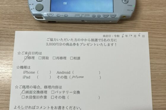 【お客様の声】大阪市北区よりお越しのお客様のPSP2000の液晶交換修理をしました!