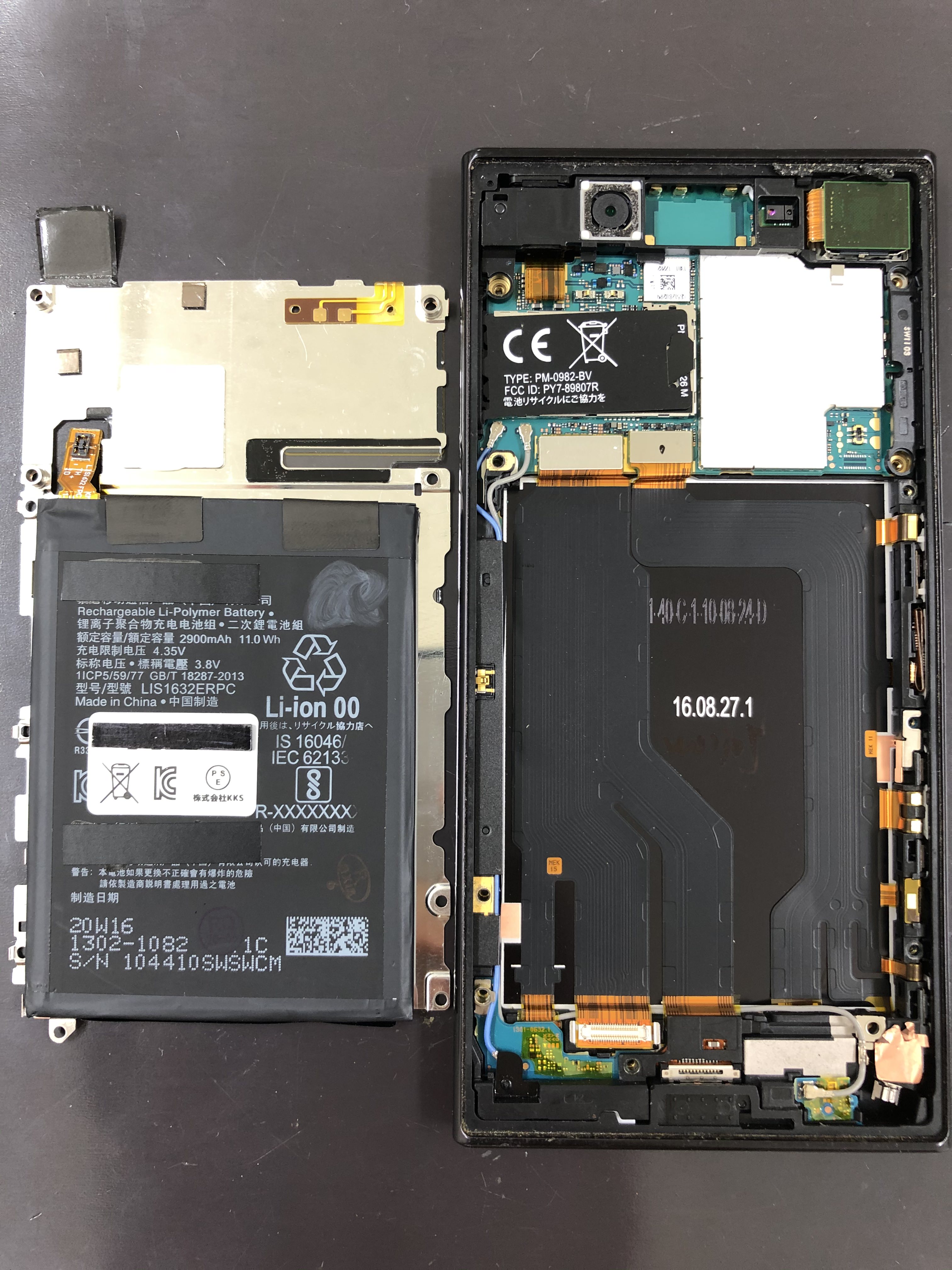 こちらはXperia XZの画面が浮いてきたとお持込みいただきました。バッテリー膨張が原因ですのでバッテリー交換することで改善されると考えられます。Android端末の場合はバッテリーの劣化が原因で起動自体が出来なくなってしまうこともあります。もしもAndroid端末が突然動かなくなったらバッテリーを交換することで起動することもありますのでお困りの方は一度ご相談いただければと思います。