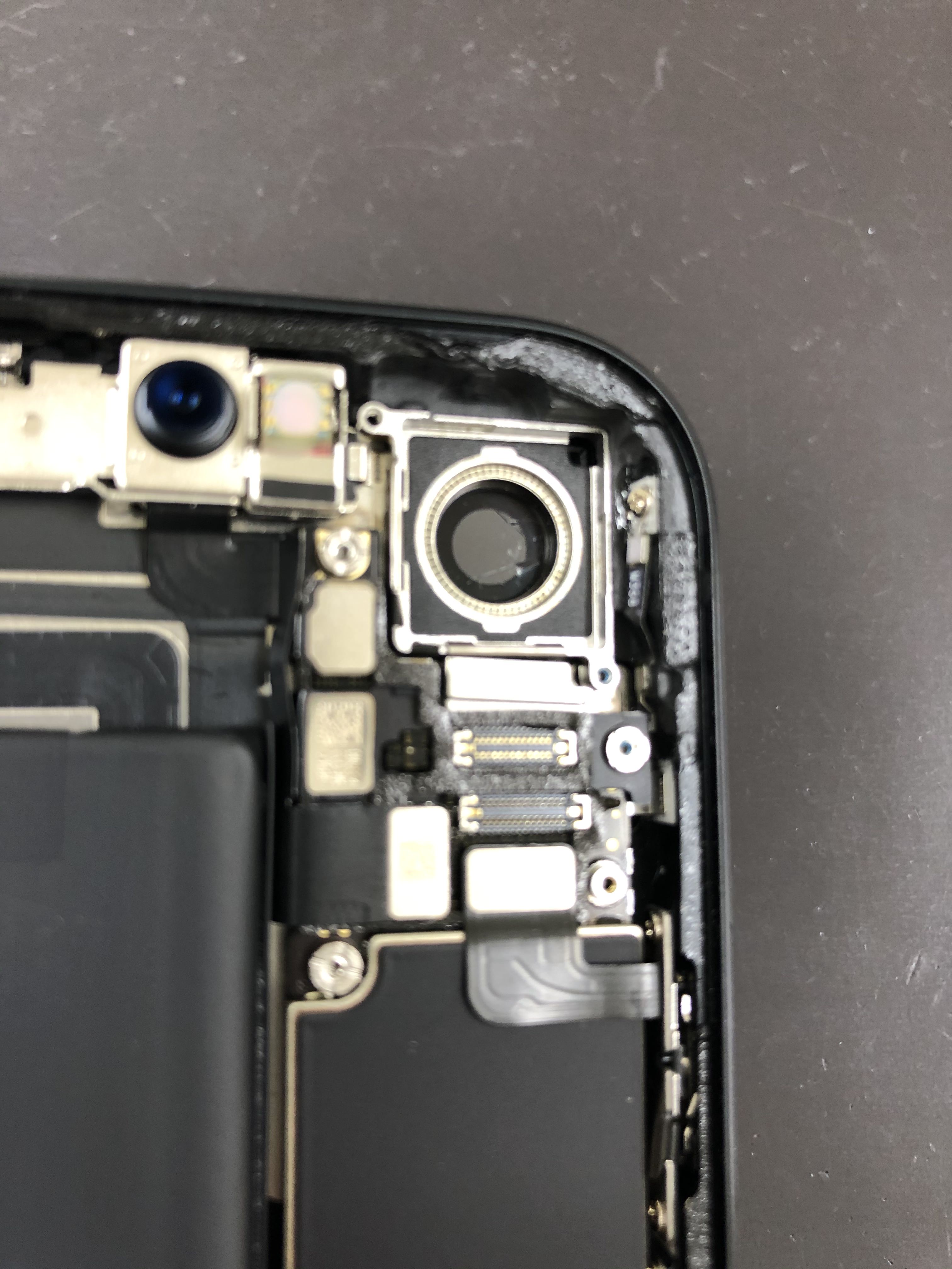 今回はiPhoneXRのカメラレンズが割れてしまったとのことでお問合せ頂きご来店頂きました。写真を撮ると白い光の線が映り込んでしまうとのことでしたのでカメラレンズのヒビ割れが影響していることが考えられます。iPhoneXRのバックカメラは出っ張っているのでカメラレンズだけ割れることが多いです。ただし、背面ガラスが割れてしまうと更に厄介ですからカメラレンズだけの割れで抑えられていることは悪くはないでしょう。