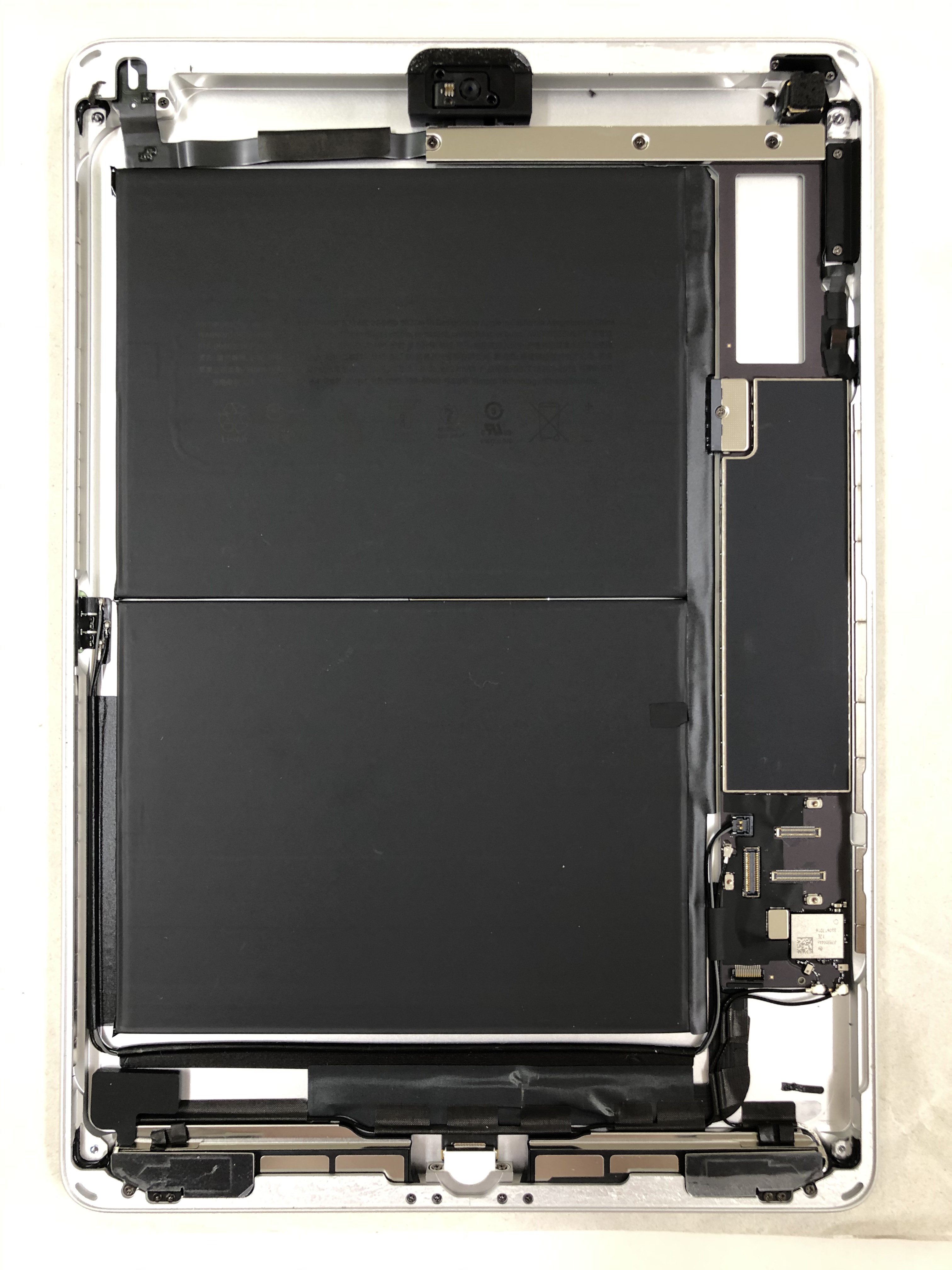 iPad7の内部です・・・バッテリー膨張なども見られませんね・・・至って正常・・・