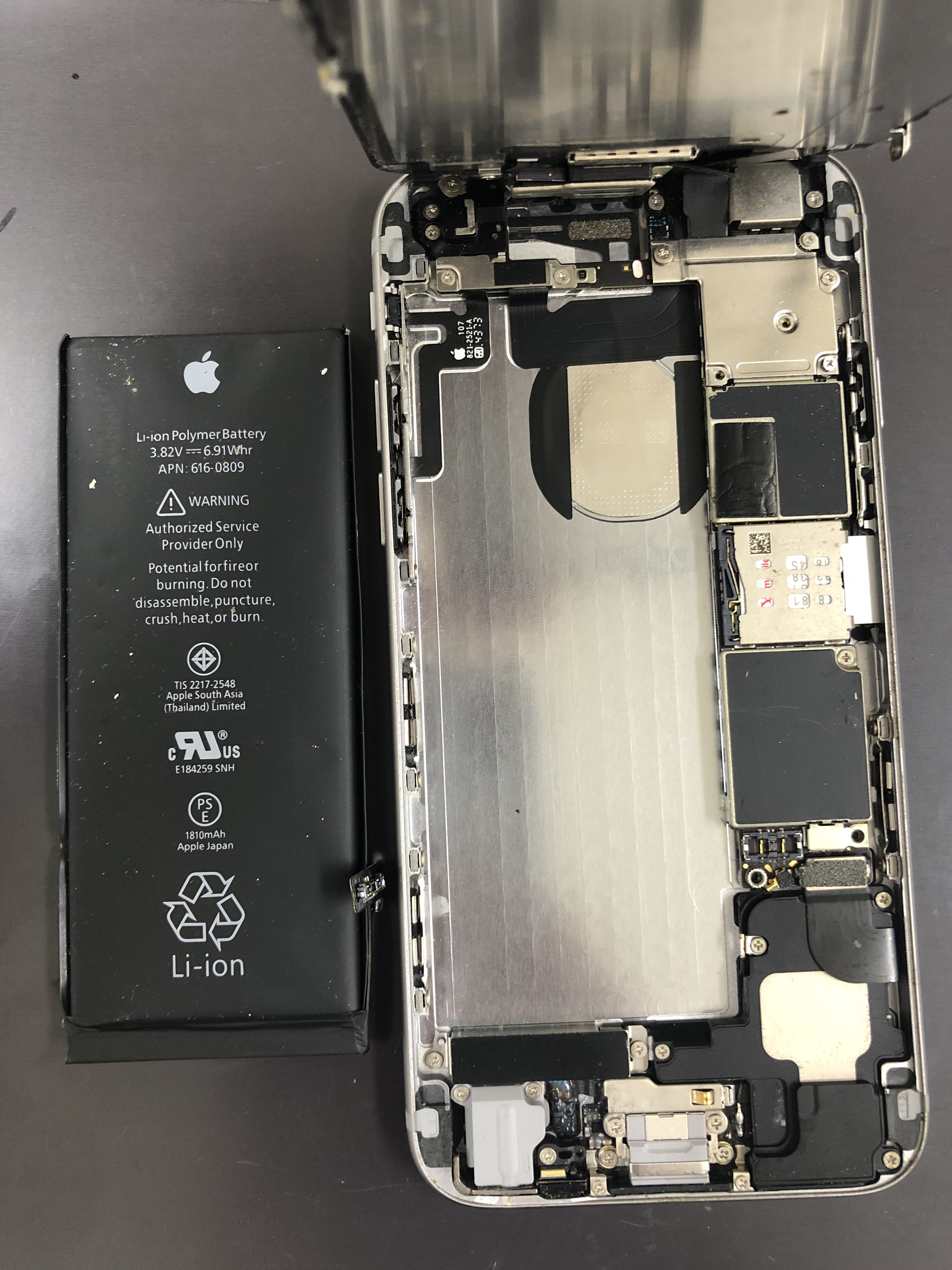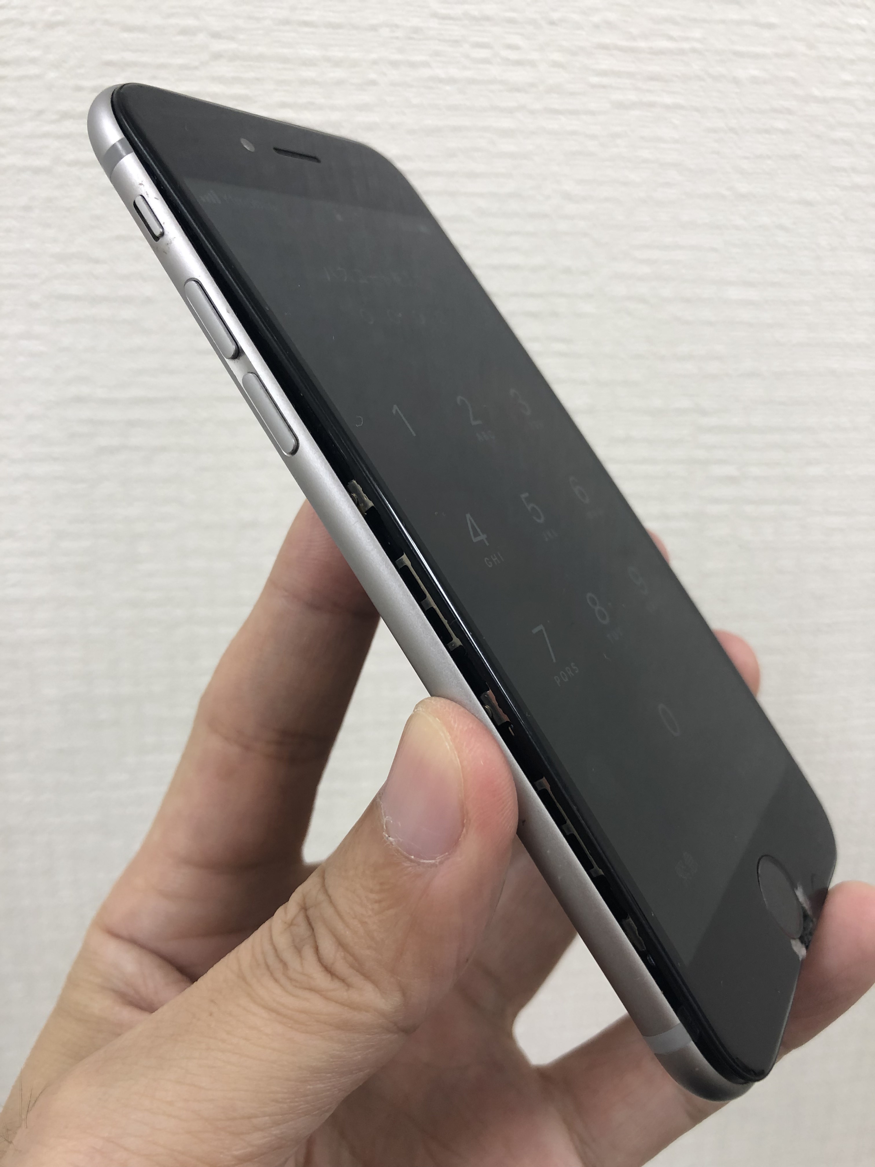 宇都宮市よりiPhone6のバッテリー膨張により画面が浮きあがってしまった!バッテリー交換で元通りに!