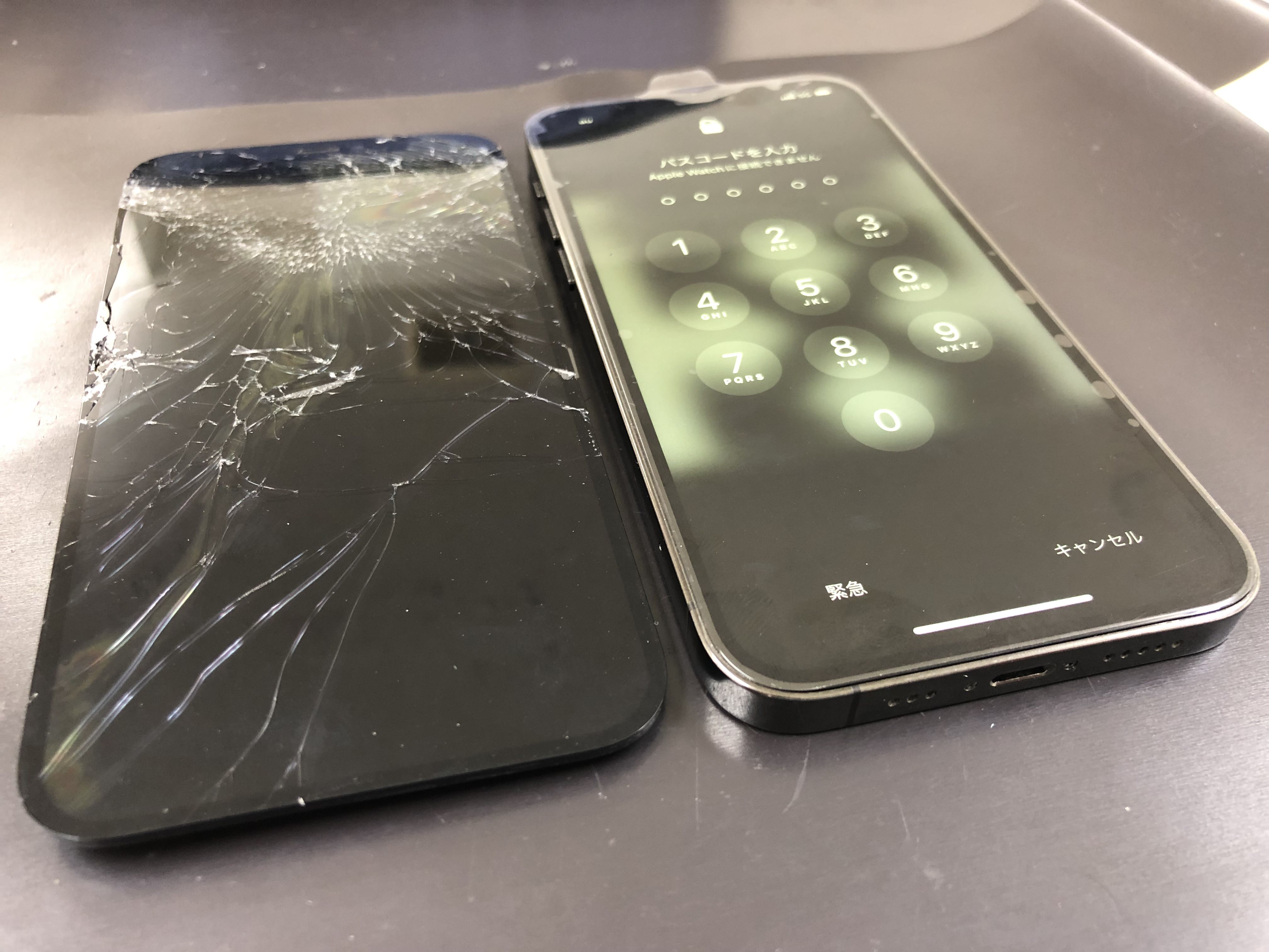 今回はiPhone12Proをかなり高い場所から地面へ落下させて画面破損してしまったのですが画面交換修理でキレイに復活致しました。フレーム曲がりは多少ありますが、画面交換で支障が出ない程度でしたので今回は無事修理完了となりました。最新機種や古い機種でもしっかり修理対応しておりますのでアイフォンの画面割れなどでお困りの際には総務省登録修理業者のスマホスピタル宇都宮店までお気軽にご相談頂ければと思います!もちろんデータそのまま・即日安心修理でお客様のアイフォンを修理致します♪