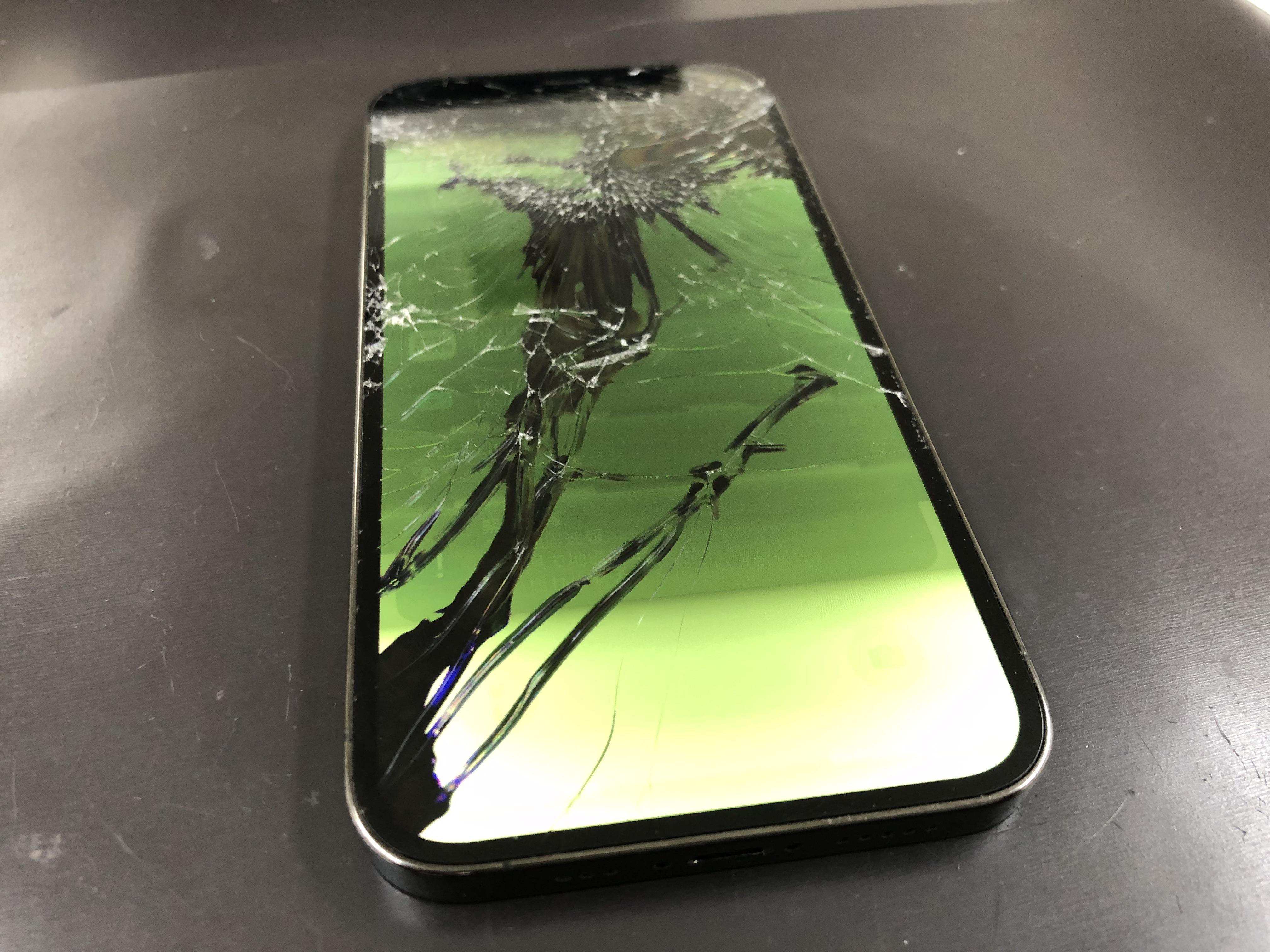 宇都宮市よりiPhone12Proをベランダから落として画面が見えない状態に!フレームも曲がっているが修理出来る?スマホスピタル宇都宮店なら修理可能です!