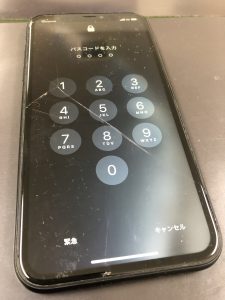 iPhoneXRの画面割れですね・・・ひび割れが・・・