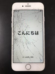 iPhone7の画面割れの修理です・・・画面がバキバキに・・・
