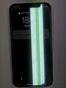 今回のお客様はお使いのiPhoneXを二週間前に落としてしまい画面に緑と白の縦線が入ったということで今回お問合せ頂きました。