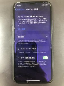 iPhoneXS以降の機種は正規のアップルでバッテリーを交換しないと最大容量が表示されなくなります!
