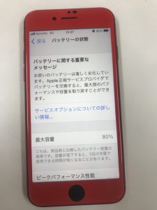 ご覧の様に最大容量も80%と低下していますね。そろそろバッテリー変え時のiPhoneですね。