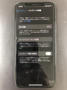 iPhone11Proのバッテリー交換になります。最大容量が80%台になっており新しいバッテリーへ交換をご希望でお持込み頂きました。iPhone系の機種は最大容量が80%台にまで劣化している時期がバッテリーの交換時期と言われております。そろそろiPhone11シリーズもそのような時期に差し掛かっていると思います。最近バッテリーの持ちが悪いなとお感じの際にはスマホスピタル宇都宮店でバッテリー交換をお試し下さい。