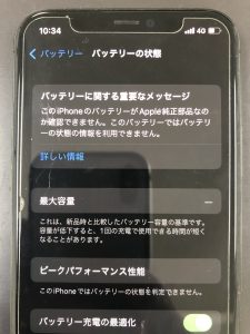 今回はiPhone11Proのバッテリー交換を行いました。新しい機種はアップル正規店で交換しないと最大容量が表示されません。ご依頼前にご確認をお願い致します。もちろんPSEマーク付きの新品バッテリーへ交換ですので安心です。iPhone11Proのバッテリー持ちが悪くなったらスマホスピタル宇都宮店までお気軽にご相談下さい!