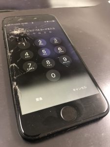 iPhoneSE第2世代の画面割れです・・・バキッと割れてますね。