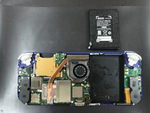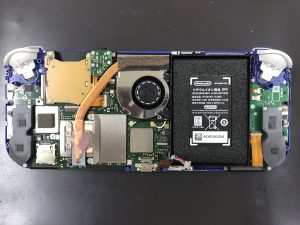 NintendoSwitch Liteの中身です!黒い部品がバッテリーです。