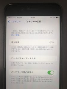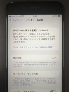 バッテリー最大容量が73%ですね・・・80%台まで下がっていれば交換時期になります。