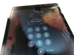 iPad9のガラス割れです・・・画面全体にひび割れが・・・