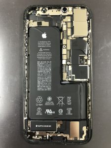 こちらはiPhoneXSのバッテリー持ちが悪くなってきた。とお問合せ頂きお持込みいただきました。iPhone14シリーズが発売されましたが円高の影響もありとても高額ですよね。そんな時はバッテリーを新品に交換することでもう1年長く使っていけば経済的です。しかも同じ機種を長く使うことでエコにも繋がります♪ 本日敬老の日ですのでご両親のスマホのバッテリーを新品にしてみてはいかがでしょうか?♪