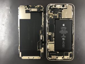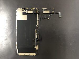 iPhone12の内部になります、画面側の部品がイヤースピーカーです。