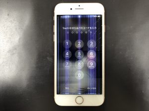 こちらは宇都宮市よりiPhone8の画面割れ修理でお持込み頂きました。画面割れだけでなく液晶破損により青い縦線が入っていました。また勝手にタッチされてしまい操作がうまく出来ないとのことでした。このような症状は画面交換を行うことで改善致します。このまま放置してしまうとゴーストタッチによりiPhoneがロックして初期化が必要になることもあります。早めの修理で安心してご利用頂ければと思います♪