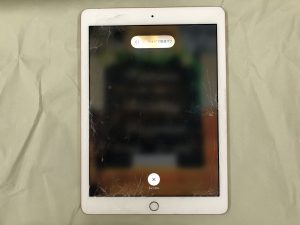 iPad7のガラスが割れてヒビ割れが広がっていますね・・・