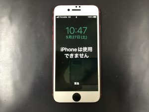 こちらはiPhoneSE第2世代が使えない!とパスコードロックがかかった状態でお持込み頂きました。下記写真の様にiPhoneは使用できません。という画面になっておりました。この画面はパスコードを何度か連続で間違えてしまいロックがかかった状態の画面です。この画面になってしまったら一度初期化しないと使うことが出来ません。初期化するのでiPhoneの中のデータは全て消えてしまいます。ですので、この画面にならないように注意して使うことが重要になります。画面が勝手に動いてしまう症状があると、気が付くとこの画面になってしまっていた・・・。なんてことが良くあります。