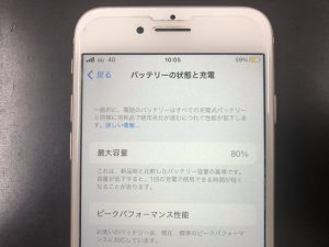 iPhone8のバッテリー最大容量80%表示になっております・・・
