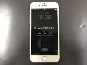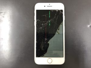 iPhone8の画面が破損して真っ暗になってしまった。とご相談頂きお持込み頂きました。写真の様にほとんど真っ暗なのですが薄くスジの様に画面が表示されています。画面破損してしまうとこのような画面状態になることがあります。そしてこの様な画面状態の場合はゴーストタッチ現象によりデータ消去のリスクが高まります。ゴーストタッチ現象によりパスコードを意図せず勝手に打ち込み勝手に間違えまくるからです。データ消去を回避するには主電源が切れれば切る。電源が切れない場合はなるべく早めに修理を行う。具体的には画面破損後2~3時間以内に修理するのが重要です。もちろん数週間空いてもデータはそのままな場合もあります。しかし画面が見えないので早めの修理が得策です。