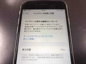 最大容量が75%まで劣化が進んでおりました。