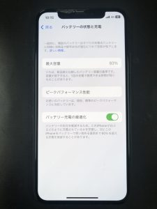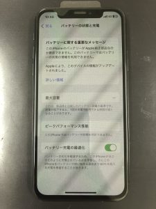 こちらは鹿沼市よりiPhoneXSのバッテリー交換でお持込み頂きました。iPhoneXS以降の機種はバッテリー交換後の最大容量の表示はされなくなります。もちろんPSEマーク付きの新品バッテリーへ交換致しますので安心してご利用頂けます。そして何と言ってもデータそのままで約30分程でバッテリー交換してお返しが出来ます。空いた時間でサッと交換出来ますので是非ご利用下さい♬