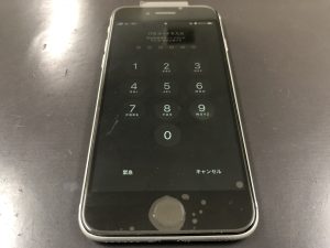 今回の様にシマ模様が画面に現れると一番怖いのがゴーストタッチです。勝手に動いてしまう訳ですから厄介です。そして勝手に動くということはあなたのパスコードを勝手に打ち込んでしまいます。連続間違えが続くとロックがかかりデータ初期化が必要になります。そうなる前に修理して安心したいところですね♪
