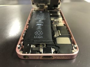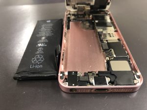 iPhoneSEの内部バッテリーがふっくらと膨らんでいます。