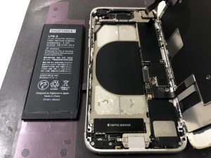 今回は宇都宮市よりiPhone8のバッテリー交換でお持込み頂き30分弱でバッテリー交換を行いお返しすることが出来ました。もちろんデータそのまますので直ぐに今まで通り使って頂けます。iphoneのバッテリー交換は当店までお気軽にお問合せ下さいませ♪