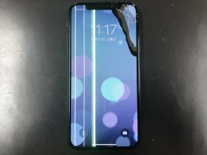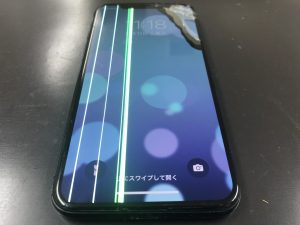 iPhoneXの画面破損で黒いシミと緑色の縦線が・・・