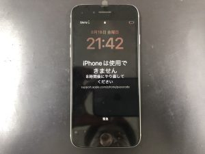今回は宇都宮市よりiPhoneSE3の液晶破損で画面が見えない状態を画面交換で修理致しました。写真の様にiPhoneは使用できません。8時間後にやり直してください。と表示されております。これはゴーストタッチによりパスコードを連続して間違えるとなってしまう症状です。8時間経過するとパスコードを入力することが出来るようになります。そこで正確なパスコードを入力することで今まで通り使うことが出来るようになります。パスコードを間違えるとまた8時間後まで操作が出来なくなりますので、パスコード入力の際には慎重に行って頂ければと思います。iPhoneの画面修理はスマホスピタル宇都宮店までお気軽にご相談下さい!
