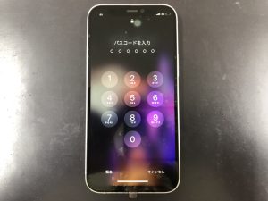 突然iPhone12の画面が真っ暗で使えなくなった!とお問合せ頂きお持込みとなりました。iPhoneだけではありませんが、画面が真っ暗になって使えなくなる故障は多くあります。今回も同じ様に画面が真っ暗になった故障です。画面は真っ暗ですが動いている感じがあるのが特徴です。着信音が鳴ったり、アラームが鳴ったりします。また、振動もしっかり感じることが出来ます。この様な症状は画面交換で改善致します。同じような症状になってしまった際には当店までお気軽にお問合せ下さいませ♪
