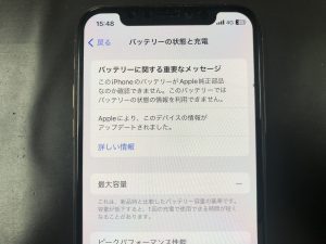 iPhoneXSはバッテリー交換後は最大容量表示は無くなります。