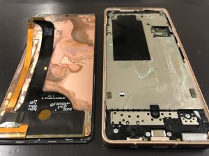 AQUOSsense4にピクルス用のお酢がバサッとかかってしまい動かなくなってしまった!とご相談頂きお持込みとなりました。写真の様にカメラレンズの中が曇って結露しておりました。起動出来るように水没復旧処理を行っていきます。水没して動かなくなってしまったらなるべく早く処置することで復旧率が上がりますので早めにご依頼頂ければと思います♪