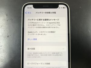 iPhone12はバッテリー交換後の最大容量表示はされません!