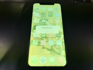 iPhoneXSの画面が緑色になってしまった。とお問合せを頂きお持込みとなりました。写真の様に通常使用が出来る状態ですが、緑色のフィルターがかかっているような状態でした。この様な画面が緑色になることはあります。液晶の不具合によるもので画面の交換が必要ですが、画面交換を行うことで仕上がりキレイに直ります。データもそのままでの修理が可能ですのでご安心下さい♬