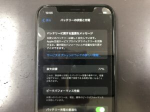 バッテリー最大容量77%表示ですね・・・