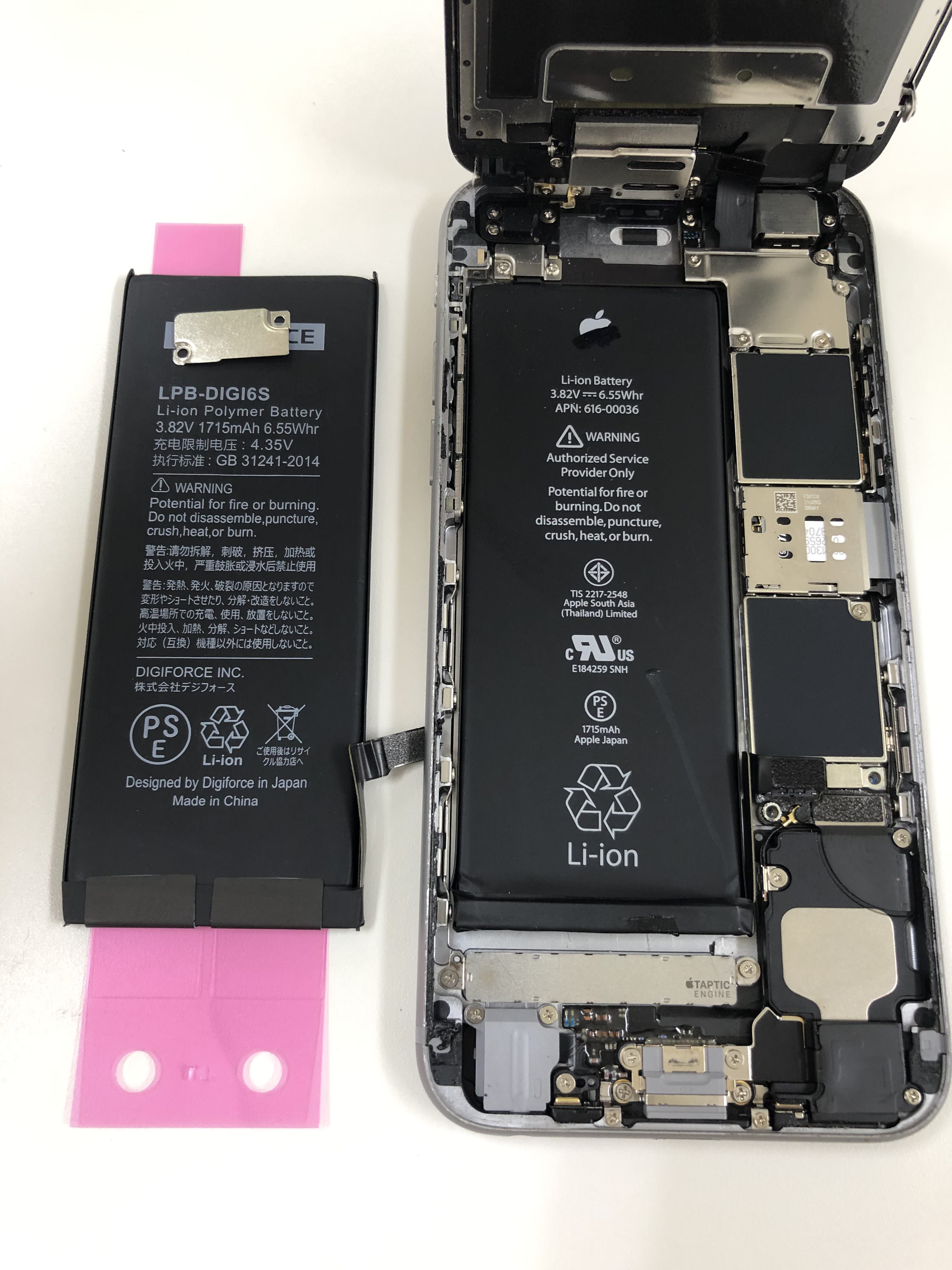 スマホスピタル宇都宮店では県外からのお持込みもかなり御座います、今回は茨城県の結城市よりiPhone6sのバッテリーの最大容量が80%を切っていてもちが悪いとのことでお持込みいただきました。 最大容量が80%を切って70%台になっていると持ちはかなり悪いと思われます。ただし、バッテリー交換することで最大容量は100%になりますので新品の時と同等の充電が可能です。もちろんPSEマークの付いたしっかりとした規格をクリアしたバッテリーをしっかりとした技術をもって交換いたします!