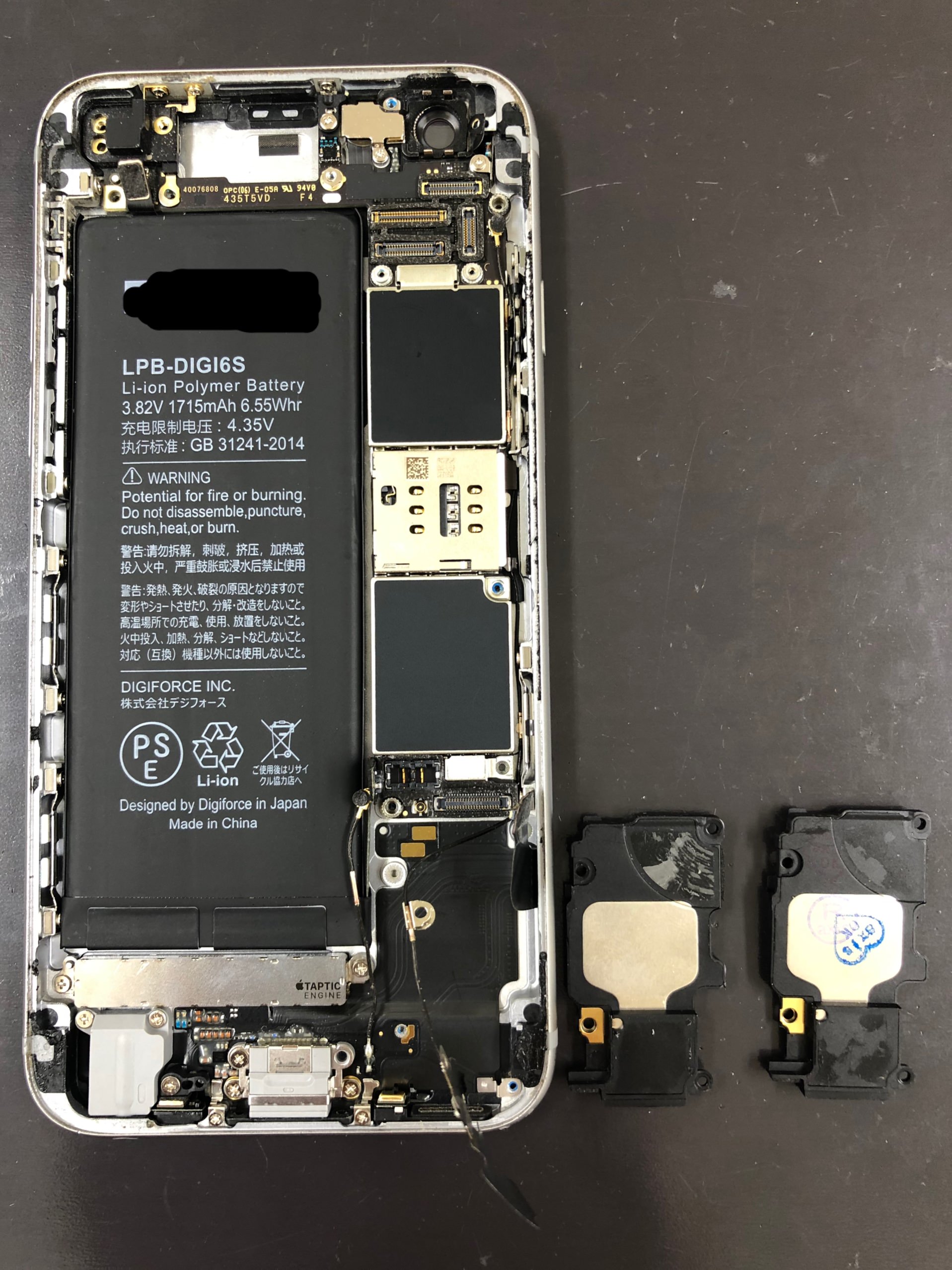 iPhone6sのスピーカーが不調とお持込み。音が鳴ったり小さかったり鳴らなかったりと不安定な状態でした!