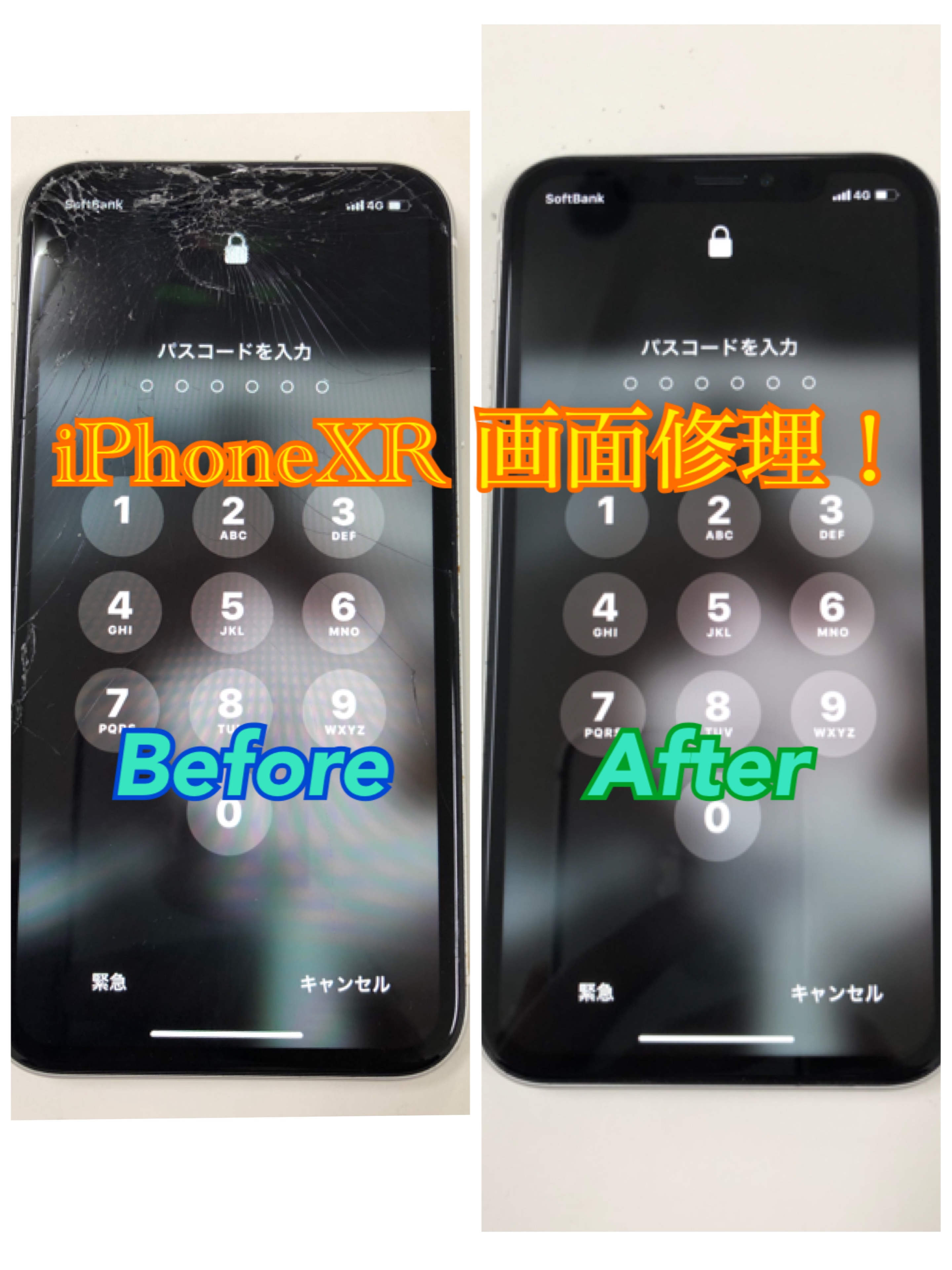 iPhoneXRの画面割れです!フロントパネル交換で改善されました♪