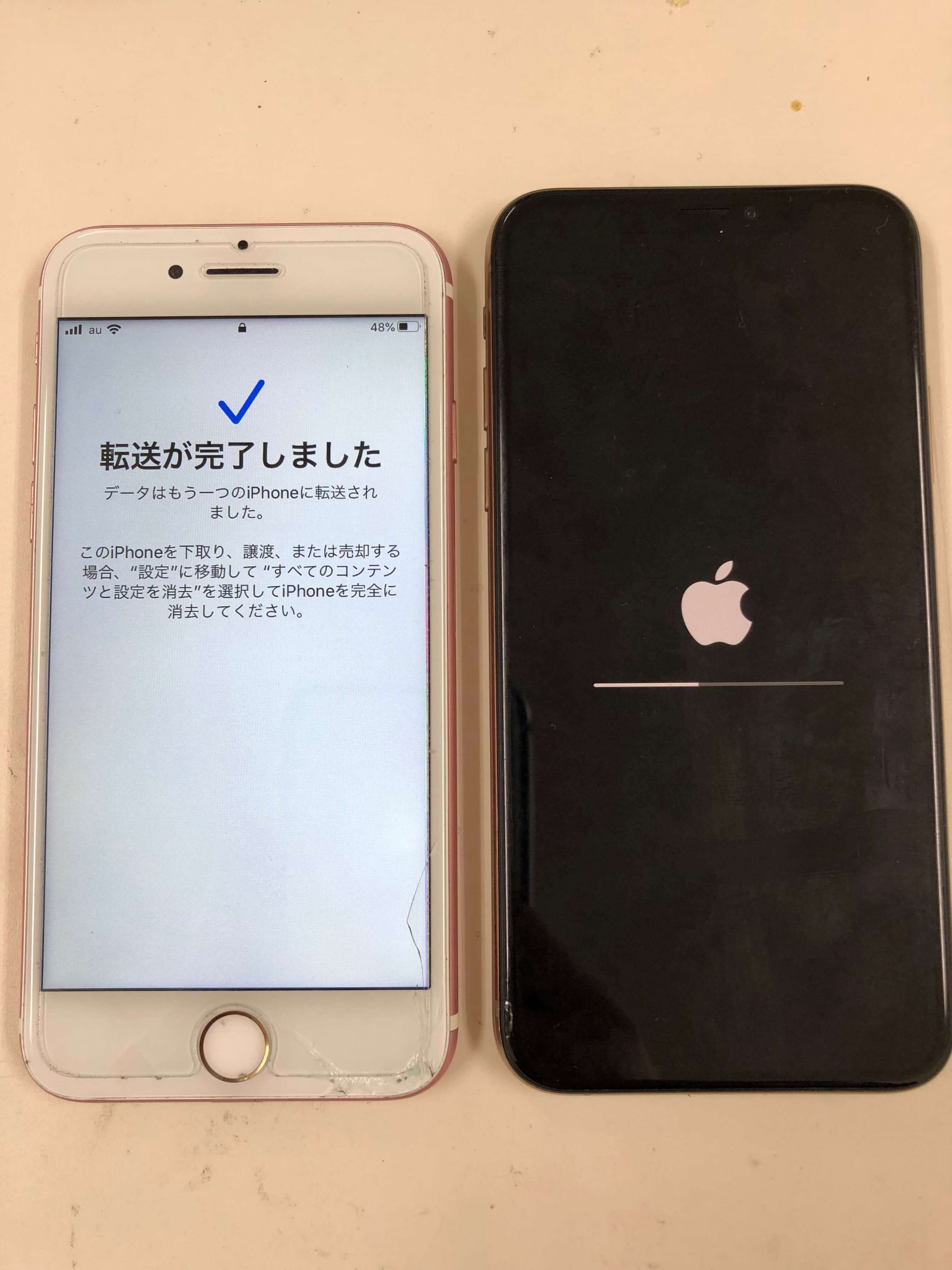 iPhone7からiPhoneXSへデータ移行を行いました!横に置くだけでワイヤレスでデータ移行が可能になっております!