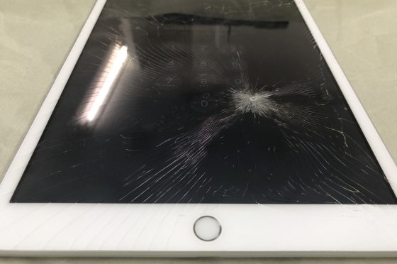 iPad第6世代の画面上にスマホを落としてしまいiPadの画面がパリーーンと!
