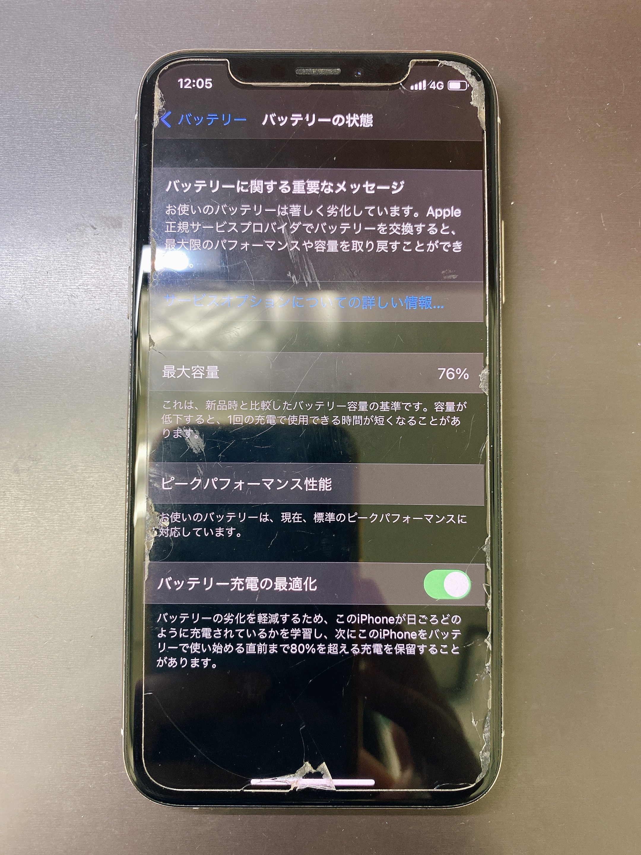 バッテリーの最大容量も76%まで低下していました。