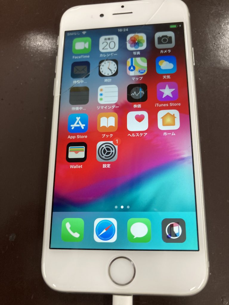 お持ちいただいたiPhone 8の画面にヒビが入っていました。