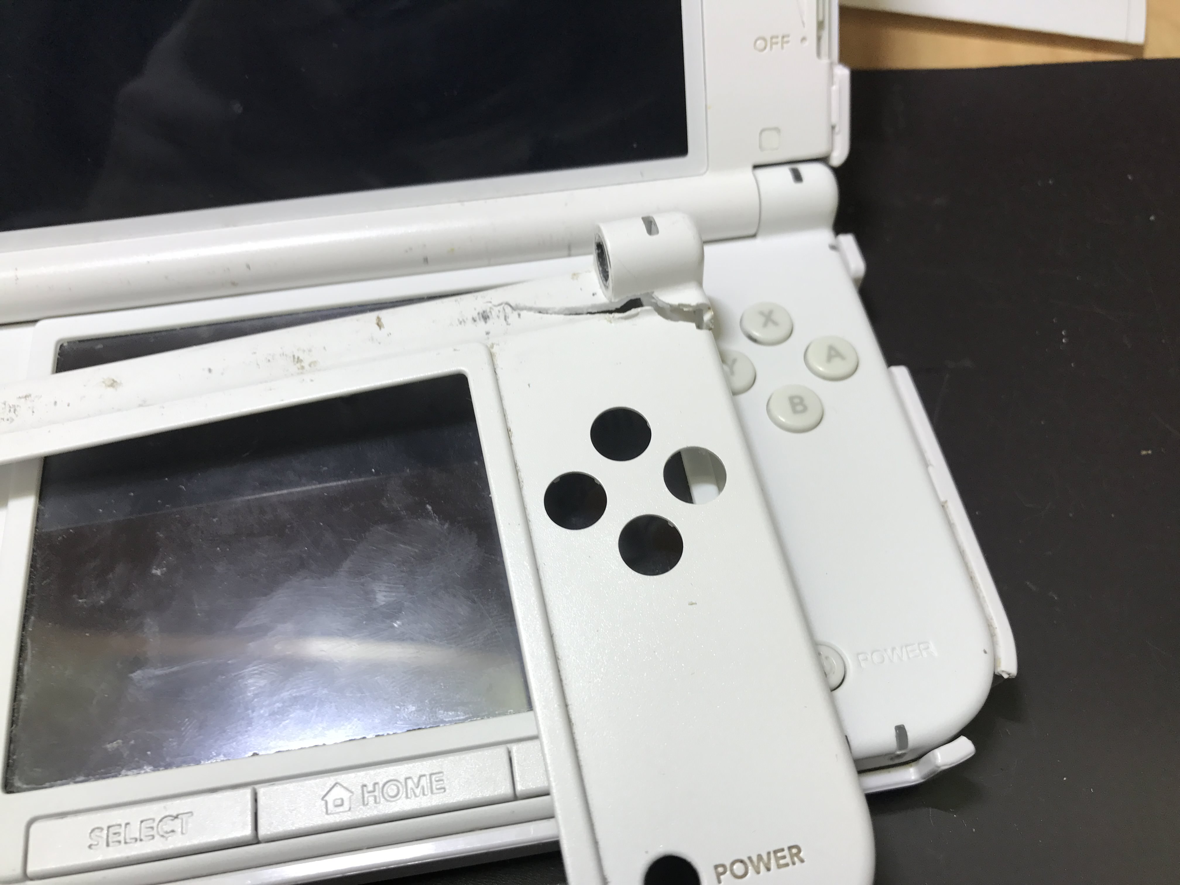 任天堂3DSLLの折りたたみヒンジ破損で